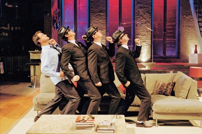 Up to the interval it shows a reunion of four overgrown college kids, twenty years on. They are simultaneously suffering mid-life crises and the light comedy before the interval derives from their travails and predicaments.