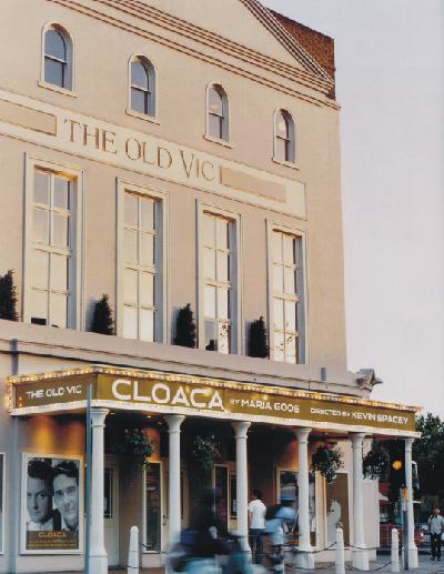 Waiting for curtain up in the relaunched Old Vic for Kevin Spacey’s first production one has time not only to observe the extended stage built out into the auditorium but also the Cloaca set.