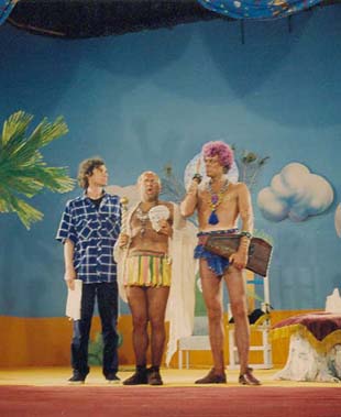 Как-то (году в 93) я увидел книгу «Русская театральная пародия 19го и начала 20 века». Там были напечатаны пьесы, которые шли в Санкт- Петербурге в театре «Кривое зеркало». Это были пародии на разные жанры сценического искусства: оперу, французскую мелодраму, водевиль, «солдатский» спектакль и т.д. Мы с продюсером поехали в Питер, нашли в архивах партитуры того времени и подали заявку руководству РТР. Как ни странно - нам дали технику и деньги. Я пригласил оператором Сашу Долгина (до этого мы с ним уже сделали на ТВ два телеспектакля: «Иди ко мне» по С.Коковкину и «Один посреди России» по повести В. Астафьева «Пастух и пастушка»). Вся остальная группа к кино никакого отношения не имела, обычные работники ТВ.