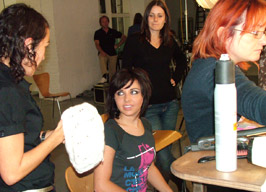 location or in make-up at the base studios, applying their art on the actors -