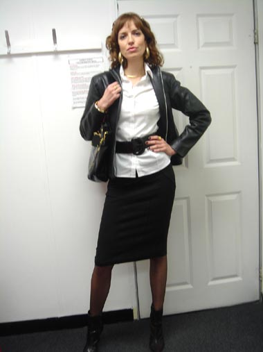 with Louisa: “The look we’ve gone for is a high-street version of Biker-Chic.