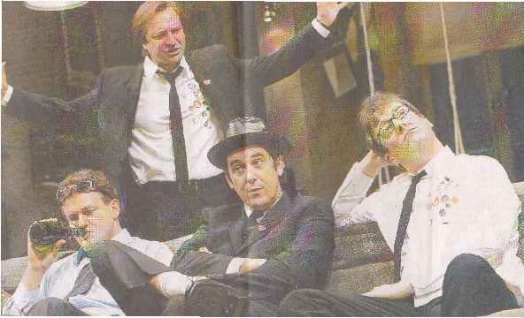 Up to the interval it shows a reunion of four overgrown college kids, twenty years on. They are simultaneously suffering mid-life crises and the light comedy before the interval derives from their travails and predicaments.