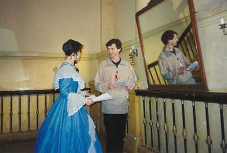 Как-то (году в 93) я увидел книгу «Русская театральная пародия 19го и начала 20 века». Там были напечатаны пьесы, которые шли в Санкт- Петербурге в театре «Кривое зеркало». Это были пародии на разные жанры сценического искусства: оперу, французскую мелодраму, водевиль, «солдатский» спектакль и т.д. Мы с продюсером поехали в Питер, нашли в архивах партитуры того времени и подали заявку руководству РТР. Как ни странно - нам дали технику и деньги. Я пригласил оператором Сашу Долгина (до этого мы с ним уже сделали на ТВ два телеспектакля: «Иди ко мне» по С.Коковкину и «Один посреди России» по повести В. Астафьева «Пастух и пастушка»). Вся остальная группа к кино никакого отношения не имела, обычные работники ТВ.