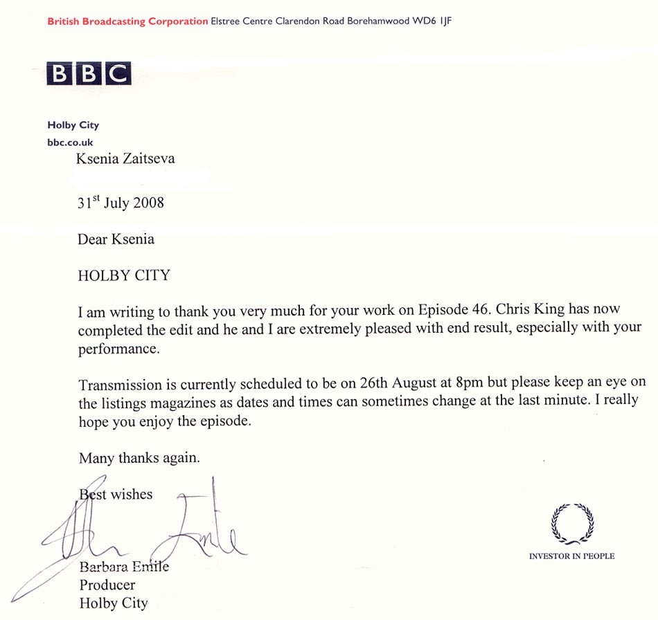 Not sure if you remember me, but I taught you voice at Webber Douglas for a couple of years. Just wanted to say I really enjoyed your performance in Holby City tonight - very sensitive and truthful.