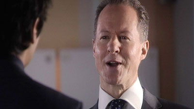 Later, when Ric - now the only candidate left - was waiting to go into his interview, Michael arrived and rushed him off to see the body of a young man. Ric, stunned, identified him as his son Leo. |