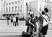 In a curiously relaxed working atmosphere, with Klapisch radiating smiles at his crew and the mix of languages on board of the boat, even the shabby Lyudmila seemed like a Mediterranean cruise ship. Also on board was Cesar Award winning actress Cecile de France, reprising her portrayal of the stunning Belgian lesbian Isabelle from the first film. In "Euro Pudding," Isabelle gives Xavier an expert lecture-cum-demonstration about what really turns a woman on. In "Les poupees russes," which is scheduled to hit the screens in April 2005, Isabelle also tries finding a woman for herself.